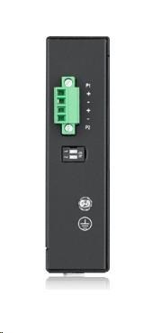 5-port Gigabit switch: 4x GbE + 1x SFP, PoE (802.3at, 30W), Power budget 120W, DIN rail/Wall mount, IP30 napájení pouze pomocí průmyslového zdroje.
